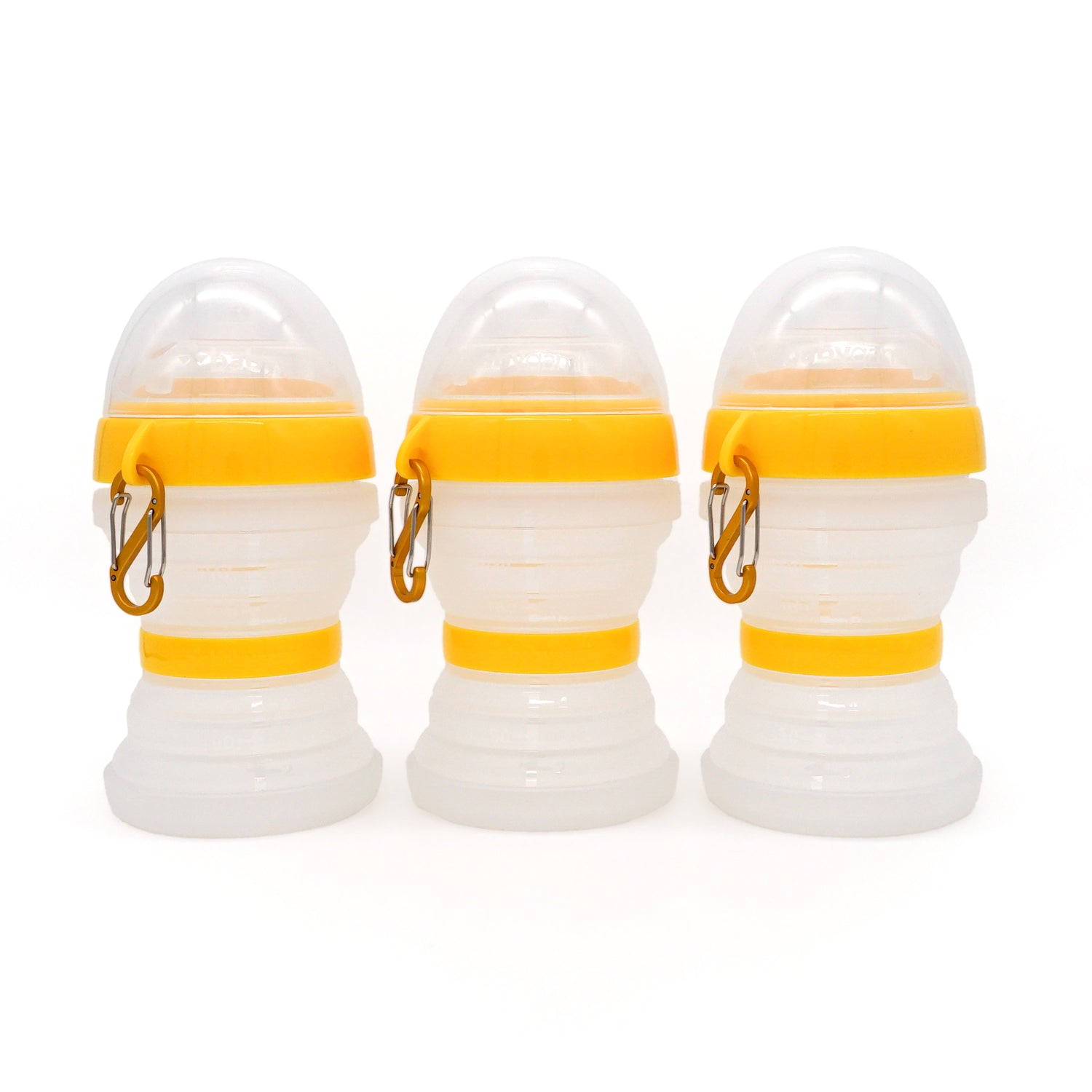Your go-to feeding solution for life on the move. This set includes three BPA-free, collapsible silicone bottles with soft, breast-like nipples for easy transitions. Secure caps keep things clean, and built-in carabiners let you clip them anywhere for hands-free convenience. Lightweight, durable, and dishwasher-safe, these bottles are perfect for travel, outdoor adventures, and everyday use with your little one.